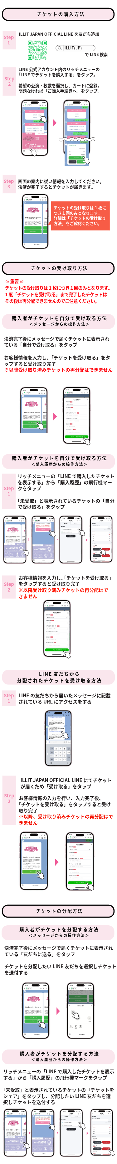 ※お申込み〜公演当日のご入場まで全て「ILLIT JAPAN OFFICIAL LINE」で実施するため、必ずアカウントを友だち追加のうえ、公演終了まではアカウントをブロックせずにメッセージが受け取れる状態でお待ちください。
